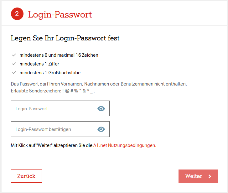 - At least 8 and at most 16 characters