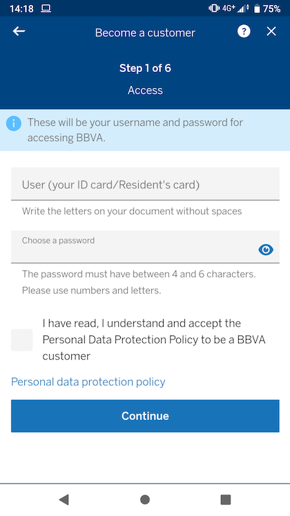BBVA dumb password rule screenshot