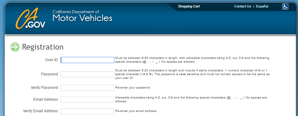 California Department of Motor Vehicles Website