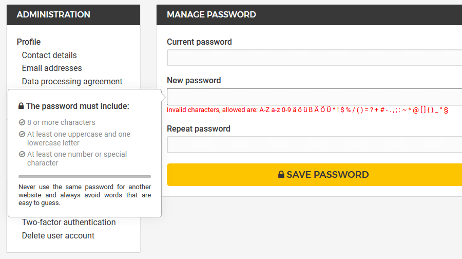 Okay, fair enough, but after putting in a password with some special characters this message appears: