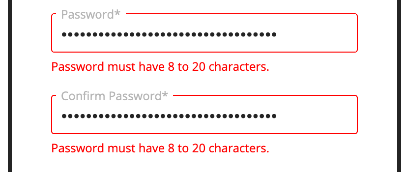 Password cannot be longer than 20 characters