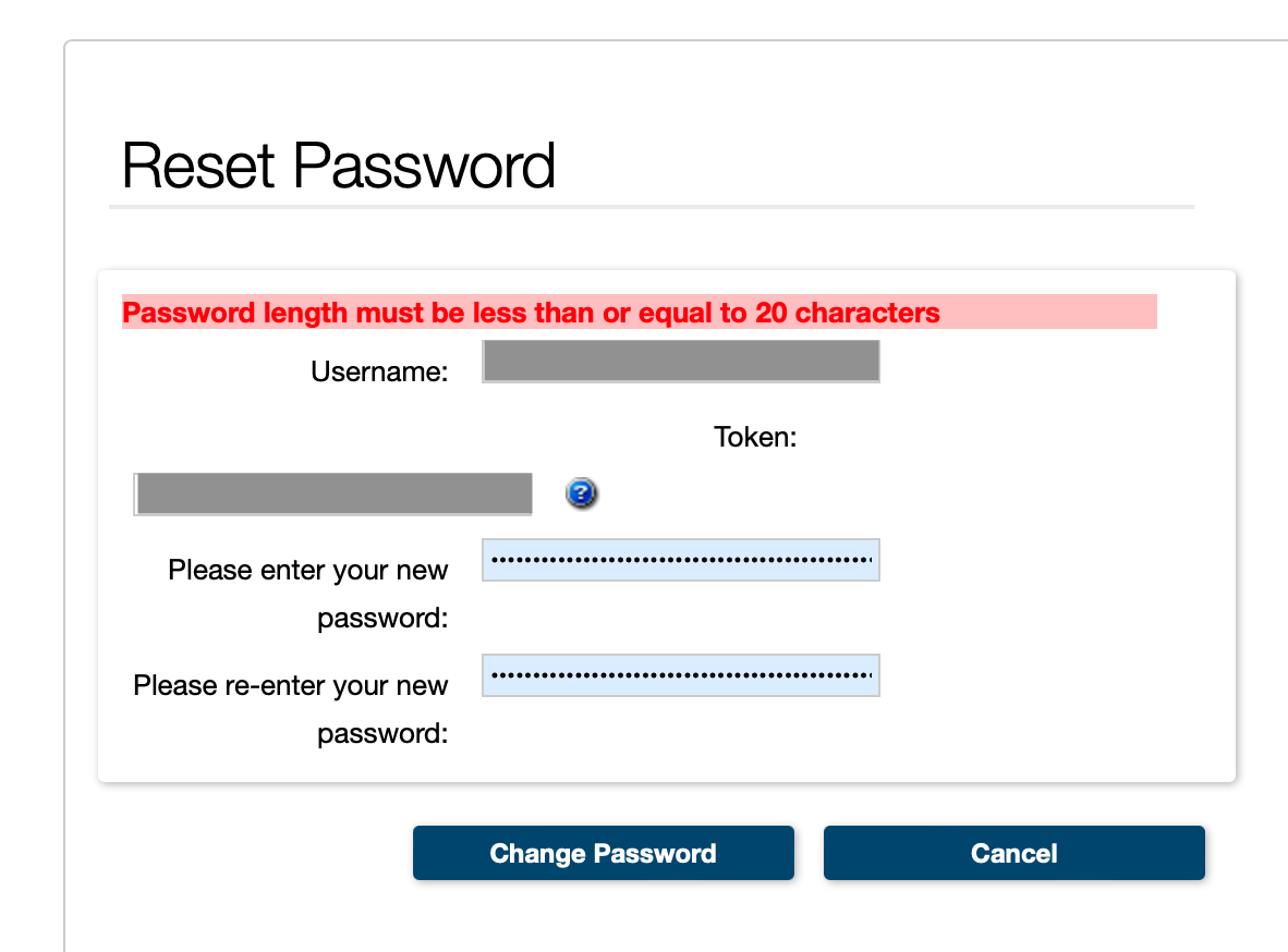 Does require special characters but limits password length to 20.
