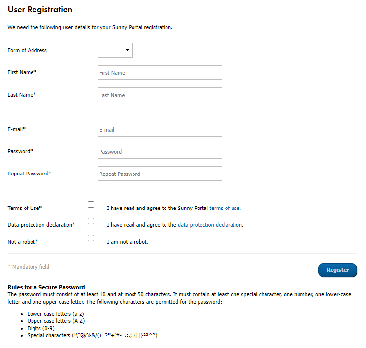 The password must consist of at least 10 and at most 50 characters. It must contain at least one special character, one number, one lower-case letter and one upper-case letter. The following characters are permitted for the password:
