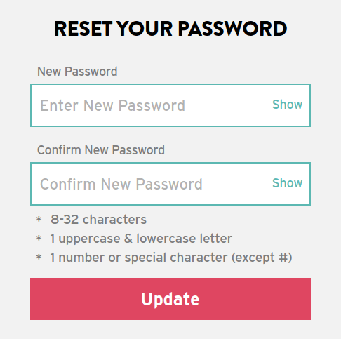 Password may include special characters, except for #.
