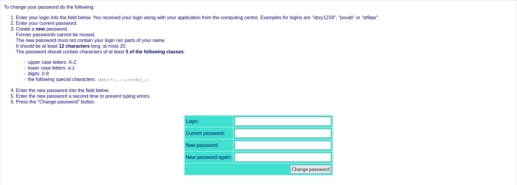- The new password must not contain your login nor parts of your name.