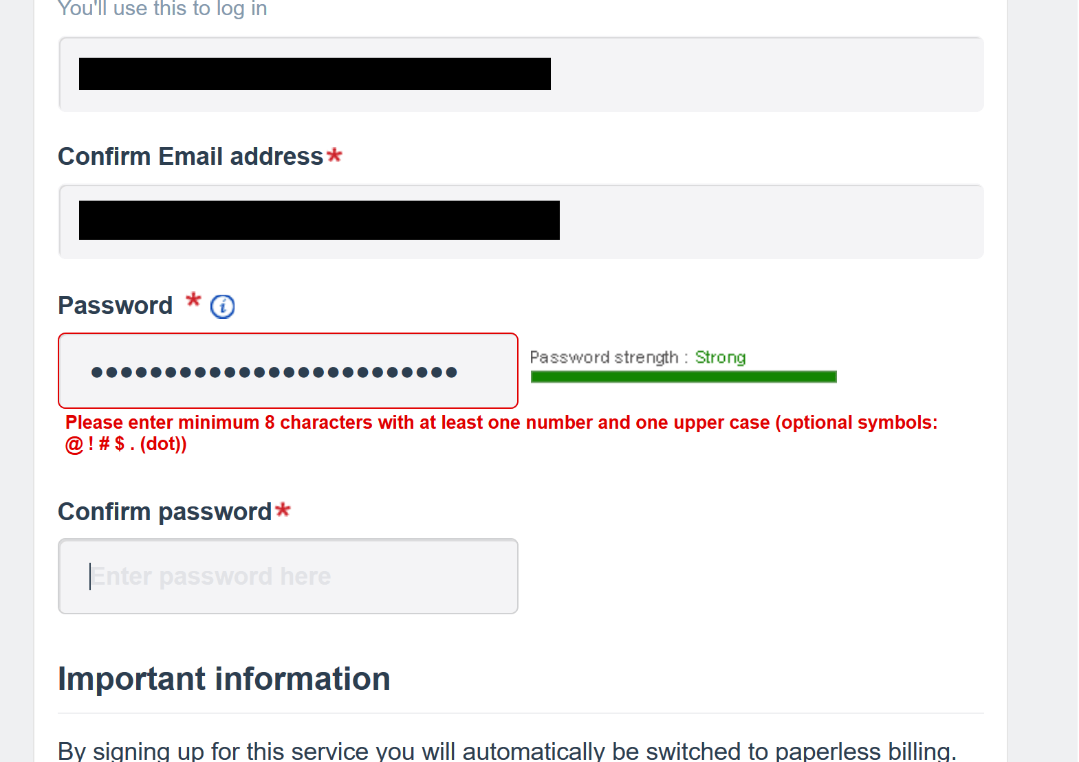 Thames Water dumb password rule screenshot